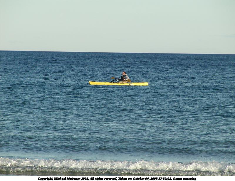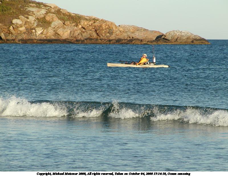 Picture #162: Ocean canoeing 800x616, 89,574 bytes (88K), (html file) Copyright, Michael Meissner 2008, All rights reserved Olympus C-2100UZ camera f/4.5, ISO 100, 1/650 sec, 54.0mm, auto mode, SHQ, cloudy, matrix metering 35mm equivalent focal length 300.0mm Taken by Michael Meissner on October 04, 2008 17:10:02 Last modified on October 17, 2008 at 07:18 |
