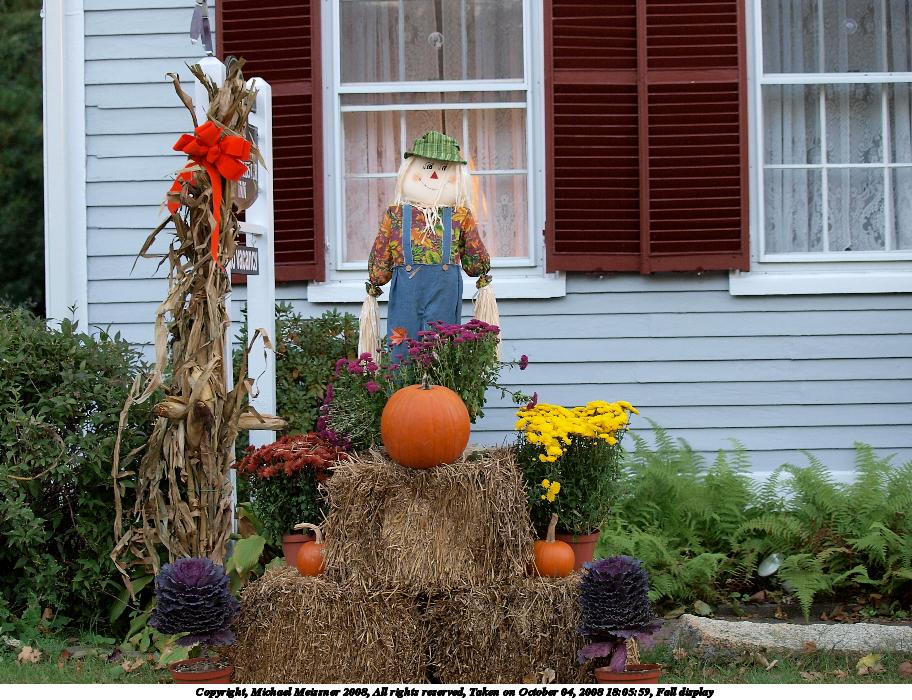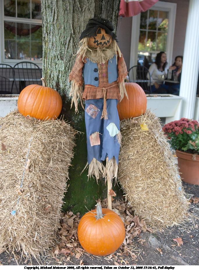 Picture #132: Fall display 912x700, 171,701 bytes (168K), (html file) Copyright, Michael Meissner 2008, All rights reserved Olympus E-3 camera with Olympus 50-200mm f/2.8-3.5 lens f/2.8, ISO 400, 1/100 sec, 50.0mm, auto mode, natural color, auto gradation, matrix metering 35mm equivalent focal length 100.0mm Programs used: gimp Taken by Michael Meissner on October 04, 2008 18:05:59 Last modified on October 17, 2008 at 07:38 |