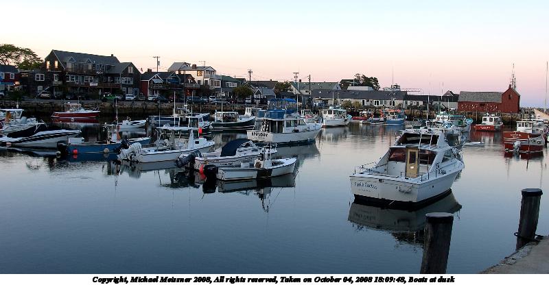 Picture #124: Boats at dusk #2 912x700, 139,701 bytes (137K), (html file) Copyright, Michael Meissner 2008, All rights reserved Olympus E-3 camera with Olympus 14-54mm f/2.8-3.5 lens f/3.2, ISO 125, 1/60 sec, 31.0mm, auto mode, natural color, auto gradation, matrix metering 35mm equivalent focal length 62.0mm Programs used: gimp Taken by Michael Meissner on October 04, 2008 18:11:48 Last modified on October 17, 2008 at 07:56 |