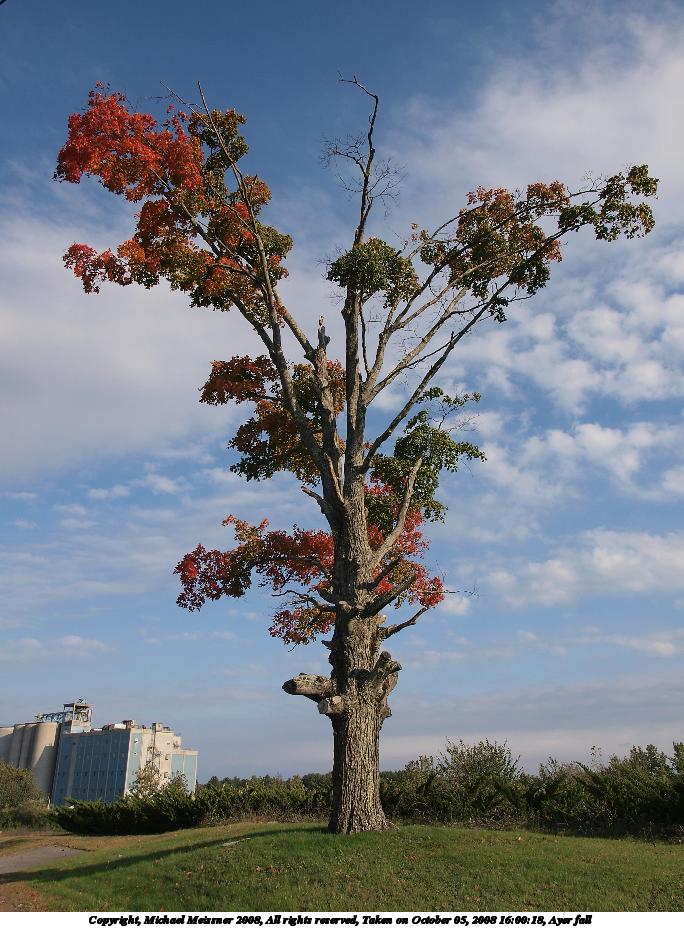 Picture #123: Ayer fall 684x928, 136,804 bytes (134K), (html file) Copyright, Michael Meissner 2008, All rights reserved Olympus E-3 camera with Olympus 14-54mm f/2.8-3.5 lens f/6.3, ISO 100, 1/400 sec, 14.0mm, auto mode, natural color, auto gradation, matrix metering 35mm equivalent focal length 28.0mm Programs used: gimp, rotate Taken by Michael Meissner on October 05, 2008 16:00:18 Last modified on October 17, 2008 at 07:58 This picture is one of my favorites. |