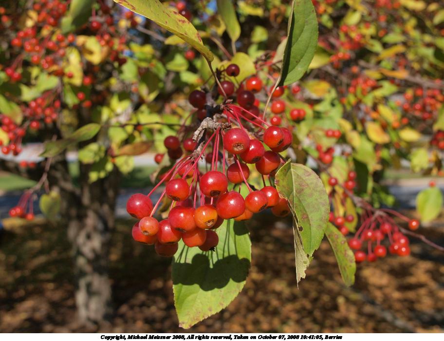 Picture #108: Berries 912x700, 122,841 bytes (120K), (html file) Copyright, Michael Meissner 2008, All rights reserved Olympus E-3 camera with Olympus 11-22mm f/2.8-3.5 lens f/7.1, ISO 100, 1/250 sec, 21.0mm, auto mode, natural color, auto gradation, matrix metering 35mm equivalent focal length 42.0mm Taken by Michael Meissner on October 07, 2008 10:41:05 Last modified on October 17, 2008 at 23:43 |