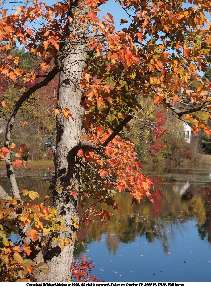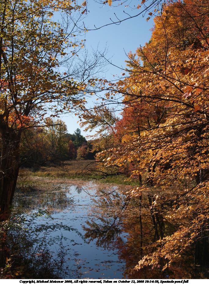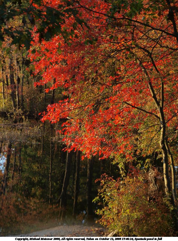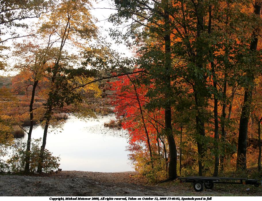 Picture #63: Spectacle pond in fall #3 912x700, 212,496 bytes (208K), (html file) Copyright, Michael Meissner 2008, All rights reserved Olympus E-3 camera with Olympus 14-54mm f/2.8-3.5 lens f/3.5, ISO 100, 1/100 sec, 25.0mm, auto mode, natural color, auto gradation, matrix metering 35mm equivalent focal length 50.0mm Taken by Michael Meissner on October 12, 2008 17:46:44 Last modified on October 18, 2008 at 09:10 |