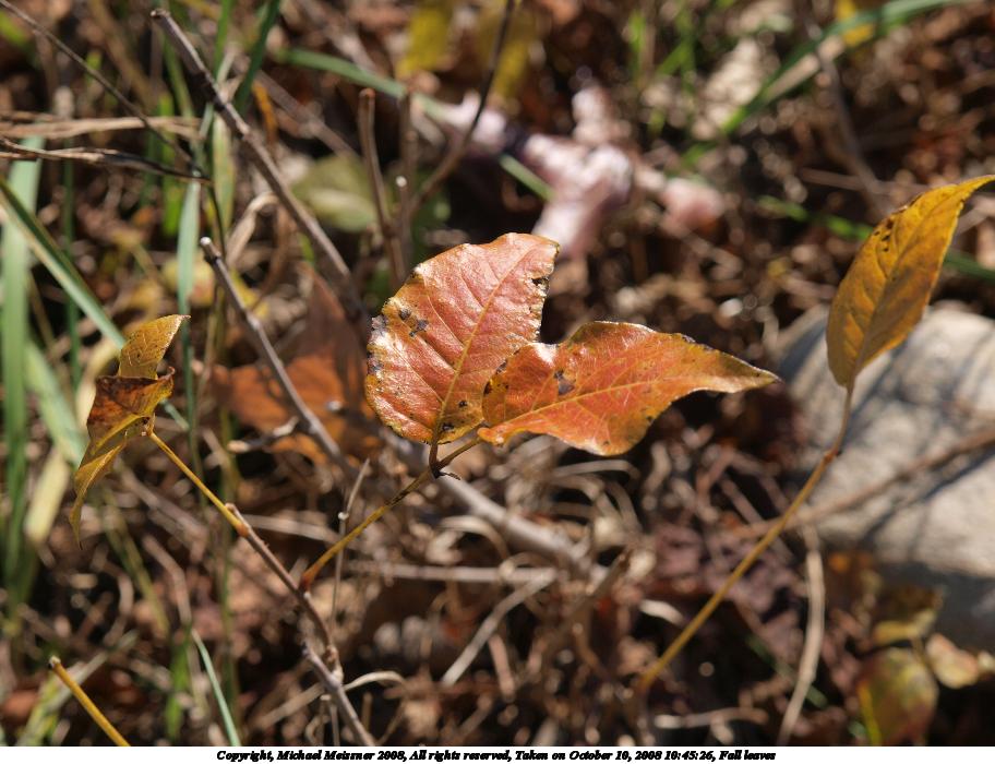 Picture #170: Fall 684x928, 184,638 bytes (181K), (html file) Copyright, Michael Meissner 2008, All rights reserved Olympus E-3 camera with Olympus 14-54mm f/2.8-3.5 lens f/3.5, ISO 100, 1/80 sec, 33.0mm, auto mode, natural color, auto gradation, matrix metering, auto + manual focus 35mm equivalent focal length 66.0mm Programs used: gimp, rotate Taken by Michael Meissner on September 30, 2008 08:40:00 Last modified on October 15, 2008 at 09:12 |