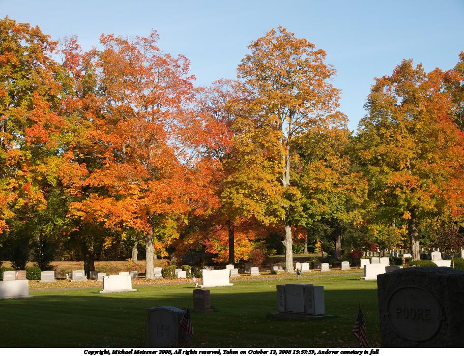 Picture #51: Andover cemetary in fall #11 912x700, 233,515 bytes (229K), (html file) Copyright, Michael Meissner 2008, All rights reserved Olympus E-3 camera with Olympus 14-54mm f/2.8-3.5 lens f/4.5, ISO 100, 1/160 sec, 27.0mm, auto mode, natural color, matrix metering, IS1 (All Direction Shake IS), exposure bracketing (shot 1) 35mm equivalent focal length 54.0mm Programs used: gimp Taken by Michael Meissner on October 18, 2008 15:35:57 Last modified on October 22, 2008 at 09:07 This picture is one of my favorites. |