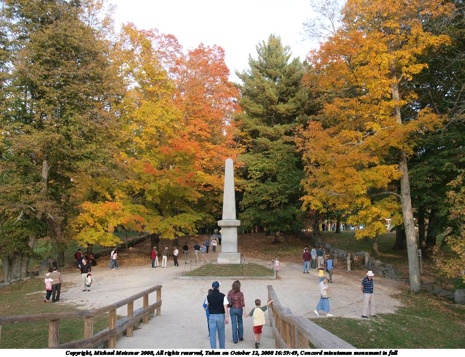 Picture #68: Concord minuteman monument in fall 912x700, 217,816 bytes (213K), (html file) Copyright, Michael Meissner 2008, All rights reserved Olympus E-3 camera with Olympus 14-54mm f/2.8-3.5 lens f/4.0, ISO 100, 1/125 sec, 19.0mm, auto mode, natural color, auto gradation, matrix metering 35mm equivalent focal length 38.0mm Taken by Michael Meissner on October 12, 2008 16:59:49 Last modified on October 18, 2008 at 09:05 |