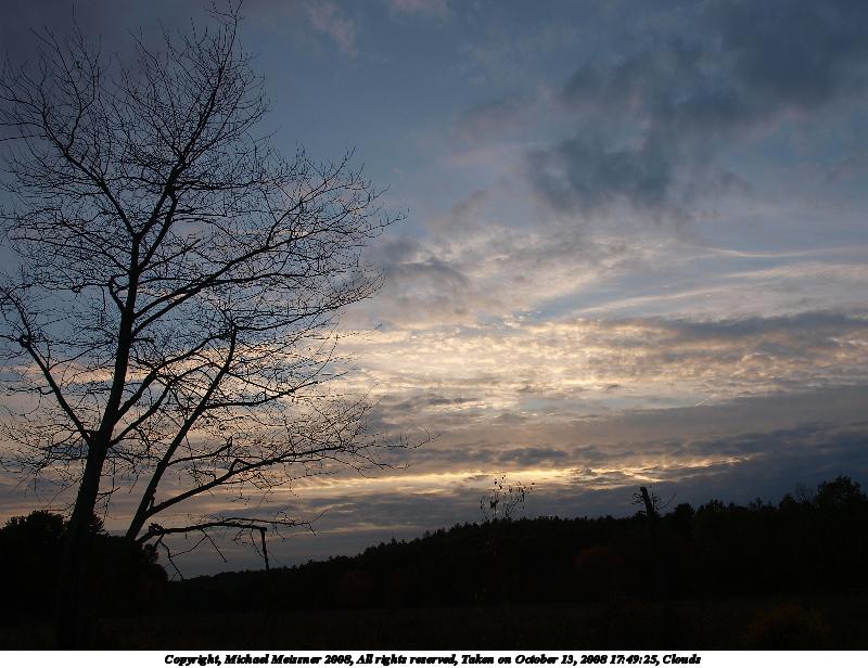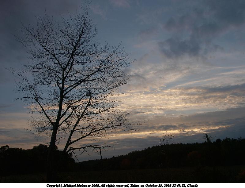 Picture #169: Clouds 800x616, 109,310 bytes (107K), (html file) Copyright, Michael Meissner 2008, All rights reserved Olympus E-3 camera with Olympus 14-54mm f/2.8-3.5 lens f/5.6, ISO 100, 1/250 sec, 14.0mm, auto mode, natural color, matrix metering, exposure bracketing (shot 1) 35mm equivalent focal length 28.0mm Programs used: gimp Taken by Michael Meissner on October 13, 2008 17:49:25 Last modified on October 16, 2008 at 22:22 |