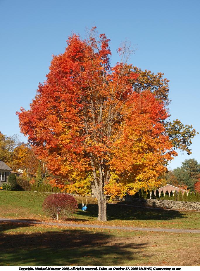 Picture #80: Fall tree 684x928, 246,628 bytes (241K), (html file) Copyright, Michael Meissner 2008, All rights reserved Olympus E-3 camera with Olympus 14-54mm f/2.8-3.5 lens f/5.6, ISO 100, 1/250 sec, 27.0mm, auto mode, natural color, matrix metering 35mm equivalent focal length 54.0mm Programs used: rotate Taken by Michael Meissner on October 12, 2008 14:26:20 Last modified on October 18, 2008 at 00:06 |