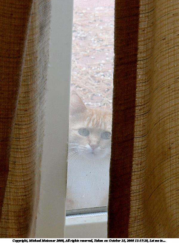 Picture #47: Let me in... 600x816, 87,267 bytes (86K), (html file) Copyright, Michael Meissner 2008, All rights reserved Olympus E-3 camera with Olympus 14-54mm f/2.8-3.5 lens f/5.6, ISO 800, 1/80 sec, 54.0mm, aperture priority, natural color, auto gradation, matrix metering, IS1 (All Direction Shake IS) 35mm equivalent focal length 108.0mm Programs used: gimp Taken by Michael Meissner on October 25, 2008 11:37:28 Last modified on October 25, 2008 at 11:54 |