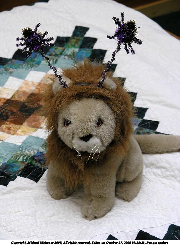 Picture #44: I've got spiders 612x832, 93,967 bytes (92K), (html file) Copyright, Michael Meissner 2008, All rights reserved Olympus C-8080WZ camera f/3.2, ISO 50, 1/80 sec, 22.7mm, auto mode, SHQ, spot metering 35mm equivalent focal length 89.0mm Extra equipment used: FL-36 Programs used: gimp, rotate Taken by Michael Meissner on October 27, 2008 09:35:23 Last modified on October 27, 2008 at 09:42 |
