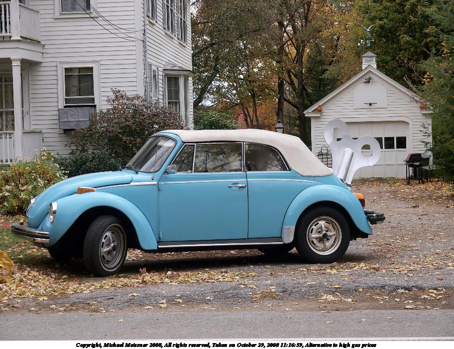 Picture #37: Alternative to high gas prices 912x700, 197,063 bytes (193K), (html file) Copyright, Michael Meissner 2008, All rights reserved Olympus E-3 camera with Olympus 14-54mm f/2.8-3.5 lens f/4.5, ISO 100, 1/160 sec, 42.0mm, auto mode, natural color, auto gradation, matrix metering, IS1 (All Direction Shake IS) 35mm equivalent focal length 84.0mm Programs used: gimp Taken by Michael Meissner on October 29, 2008 11:16:59 Last modified on October 29, 2008 at 21:58 |