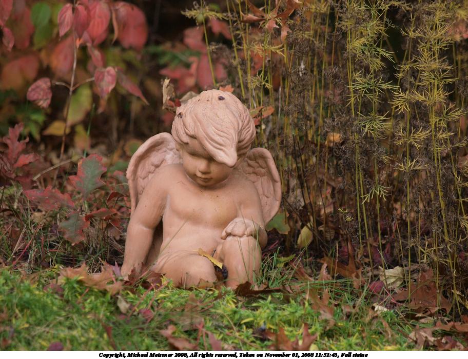 Picture #10: Fall statue #2 912x700, 137,639 bytes (135K), (html file) Copyright, Michael Meissner 2008, All rights reserved Olympus E-3 camera with Olympus 50-200mm f/2.8-3.5 lens f/3.5, ISO 160, 1/250 sec, 200.0mm, auto mode, natural color, auto gradation, matrix metering, IS1 (All Direction Shake IS) 35mm equivalent focal length 401.0mm Taken by Michael Meissner on November 01, 2008 11:51:43 Last modified on November 01, 2008 at 23:00 |