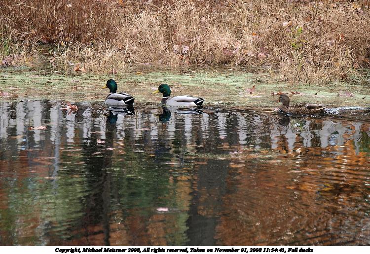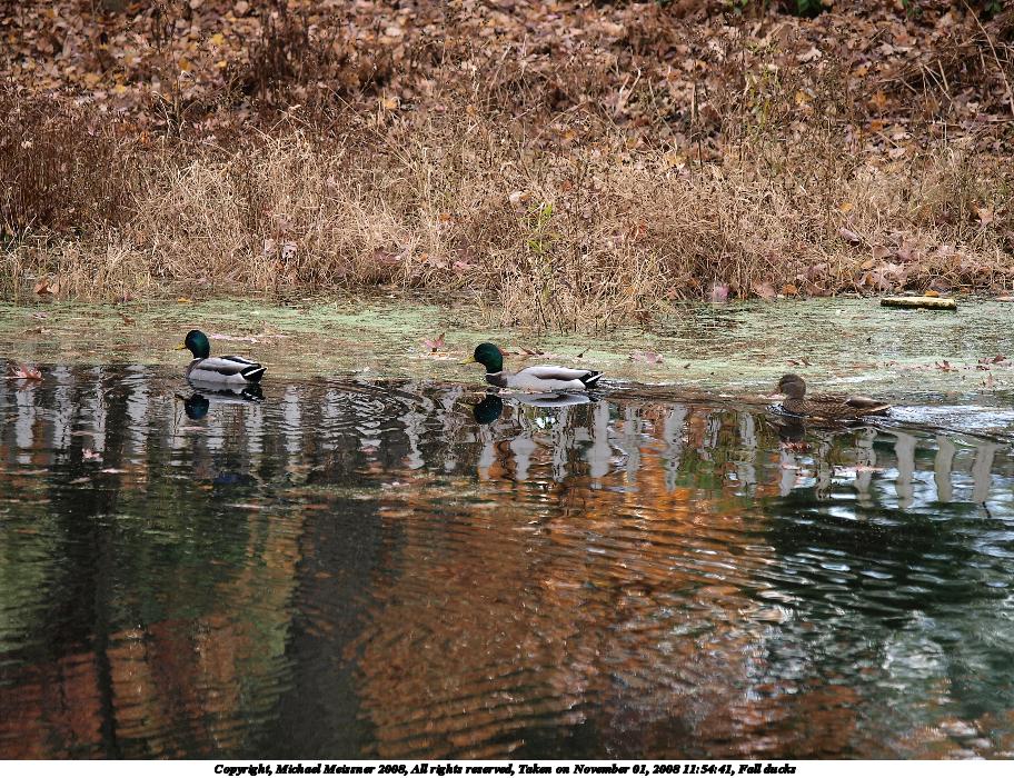 Picture #120: Fall ducks #3 912x700, 160,834 bytes (158K), (html file) Copyright, Michael Meissner 2008, All rights reserved Olympus E-3 camera with Olympus 50-200mm f/2.8-3.5 lens f/3.5, ISO 100, 1/250 sec, 200.0mm, auto mode, natural color, auto gradation, matrix metering, IS1 (All Direction Shake IS) 35mm equivalent focal length 401.0mm Taken by Michael Meissner on November 01, 2008 11:54:51 Last modified on November 02, 2008 at 21:22 |