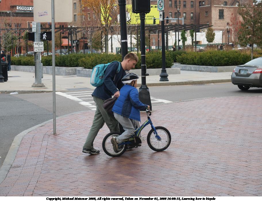 Picture #119: Learning how to bicycle 912x700, 144,219 bytes (141K), (html file) Copyright, Michael Meissner 2008, All rights reserved Olympus E-3 camera with Olympus 14-54mm f/2.8-3.5 lens f/4.0, ISO 100, 1/125 sec, 38.0mm, auto mode, natural color, auto gradation, matrix metering, IS1 (All Direction Shake IS) 35mm equivalent focal length 76.0mm Taken by Michael Meissner on November 01, 2008 16:08:15 Last modified on November 02, 2008 at 21:23 |