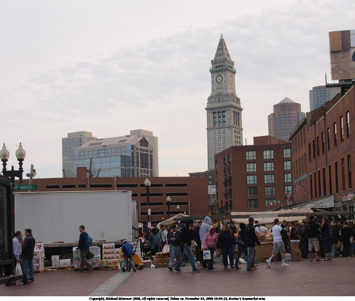 Picture #118: Boston's haymarket area 1200x1016, 145,117 bytes (142K), (html file) Copyright, Michael Meissner 2008, All rights reserved Olympus E-3 camera with Olympus 14-54mm f/2.8-3.5 lens f/5.0, ISO 100, 1/200 sec, 19.0mm, auto mode, natural color, auto gradation, matrix metering, IS1 (All Direction Shake IS) 35mm equivalent focal length 38.0mm Programs used: gimp Taken by Michael Meissner on November 01, 2008 16:09:25 Last modified on November 02, 2008 at 21:25 |