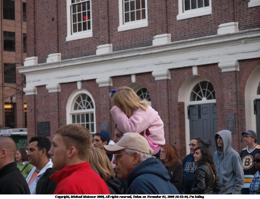 Picture #105: I'm hiding 912x700, 102,963 bytes (101K), (html file) Copyright, Michael Meissner 2008, All rights reserved Olympus E-3 camera with Olympus 14-54mm f/2.8-3.5 lens f/3.5, ISO 125, 1/100 sec, 54.0mm, auto mode, natural color, auto gradation, matrix metering, IS1 (All Direction Shake IS) 35mm equivalent focal length 108.0mm Taken by Michael Meissner on November 01, 2008 16:52:44 Last modified on November 02, 2008 at 21:34 |