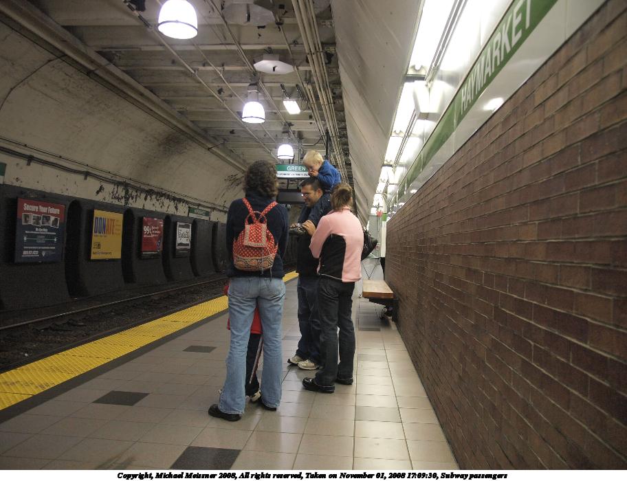 Picture #100: Subway passengers 912x700, 107,814 bytes (106K), (html file) Copyright, Michael Meissner 2008, All rights reserved Olympus E-3 camera with Olympus 14-54mm f/2.8-3.5 lens f/2.8, ISO 640, 1/60 sec, 14.0mm, auto mode, natural color, auto gradation, matrix metering, IS1 (All Direction Shake IS) 35mm equivalent focal length 28.0mm Taken by Michael Meissner on November 01, 2008 17:09:30 Last modified on November 02, 2008 at 21:39 |