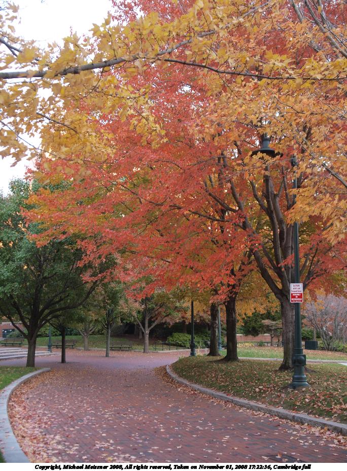 Picture #97: Cambridge fall 684x928, 184,942 bytes (181K), (html file) Copyright, Michael Meissner 2008, All rights reserved Olympus E-3 camera with Olympus 14-54mm f/2.8-3.5 lens f/3.2, ISO 400, 1/60 sec, 23.0mm, auto mode, natural color, auto gradation, matrix metering, IS1 (All Direction Shake IS) 35mm equivalent focal length 46.0mm Programs used: rotate Taken by Michael Meissner on November 01, 2008 17:22:36 Last modified on November 02, 2008 at 21:42 |