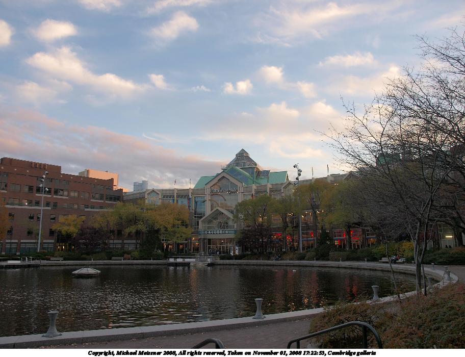 Picture #96: Cambridge galleria 912x700, 121,244 bytes (119K), (html file) Copyright, Michael Meissner 2008, All rights reserved Olympus E-3 camera with Olympus 14-54mm f/2.8-3.5 lens f/4.0, ISO 100, 1/125 sec, 14.0mm, auto mode, natural color, auto gradation, matrix metering, IS1 (All Direction Shake IS) 35mm equivalent focal length 28.0mm Programs used: gimp Taken by Michael Meissner on November 01, 2008 17:22:53 Last modified on November 02, 2008 at 21:44 |