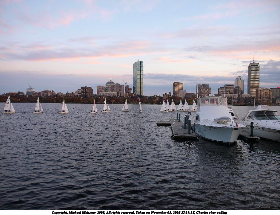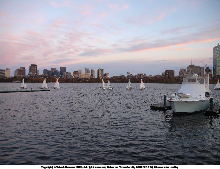 Picture #93: Charles river sailing #2 600x816, 91,964 bytes (90K), (html file) Copyright, Michael Meissner 2008, All rights reserved Olympus E-3 camera with Olympus 14-54mm f/2.8-3.5 lens f/3.2, ISO 200, 1/60 sec, 32.0mm, auto mode, natural color, auto gradation, matrix metering, IS1 (All Direction Shake IS) 35mm equivalent focal length 64.0mm Programs used: gimp, rotate Taken by Michael Meissner on November 01, 2008 17:39:20 Last modified on November 02, 2008 at 21:53 |