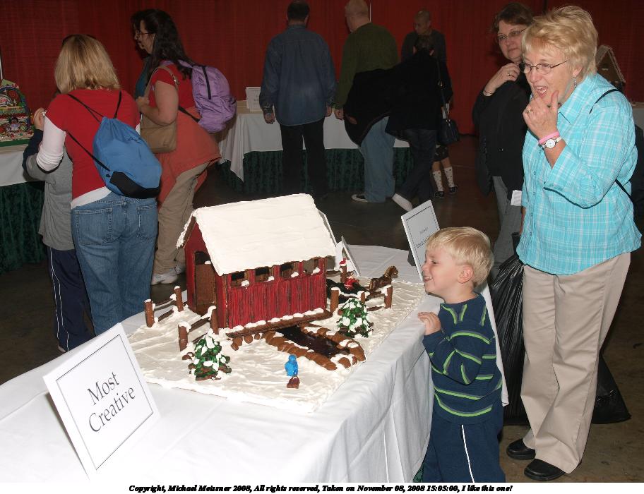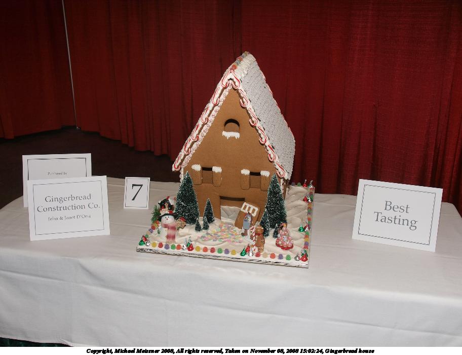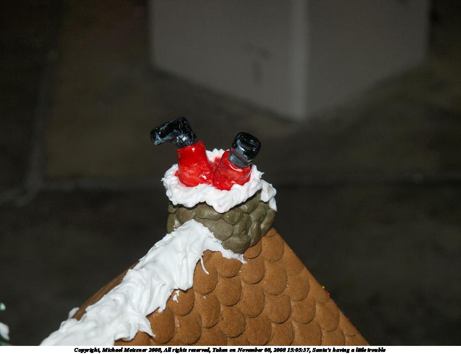 Picture #69: Gingerbread house #2 684x928, 95,331 bytes (94K), (html file) Copyright, Michael Meissner 2008, All rights reserved Olympus E-3 camera with Olympus 14-54mm f/2.8-3.5 lens f/3.2, ISO 640, 1/60 sec, 28.0mm, auto mode, natural color, auto gradation, matrix metering, IS1 (All Direction Shake IS) 35mm equivalent focal length 56.0mm Programs used: rotate Taken by Michael Meissner on November 08, 2008 15:08:10 Last modified on November 16, 2008 at 15:34 |