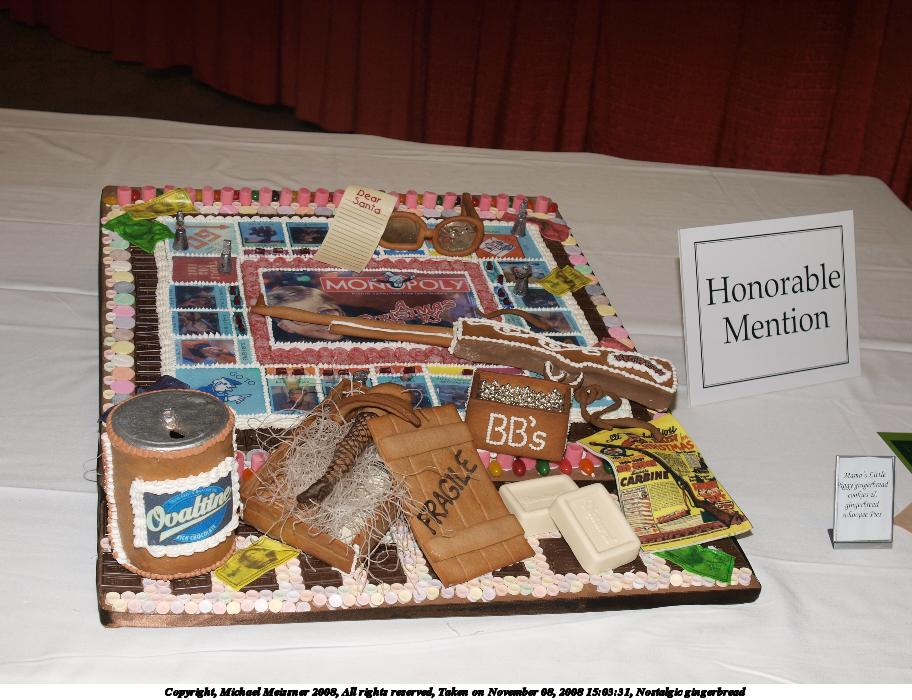 Picture #78: Gingerbrad train by Ginger Betty's Bakery 912x700, 151,721 bytes (149K), (html file) Copyright, Michael Meissner 2008, All rights reserved Olympus E-3 camera with Olympus 14-54mm f/2.8-3.5 lens f/5.6, ISO 100, FL-36 flash, 1/60 sec, 25.0mm, aperture priority, natural color, auto gradation, matrix metering, IS1 (All Direction Shake IS) 35mm equivalent focal length 50.0mm Extra equipment used: FL-36 flash Taken by Michael Meissner on November 08, 2008 15:04:02 Last modified on November 16, 2008 at 15:30 |