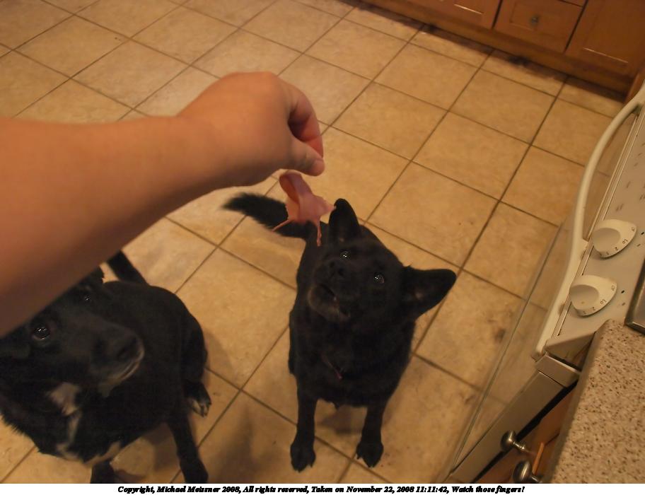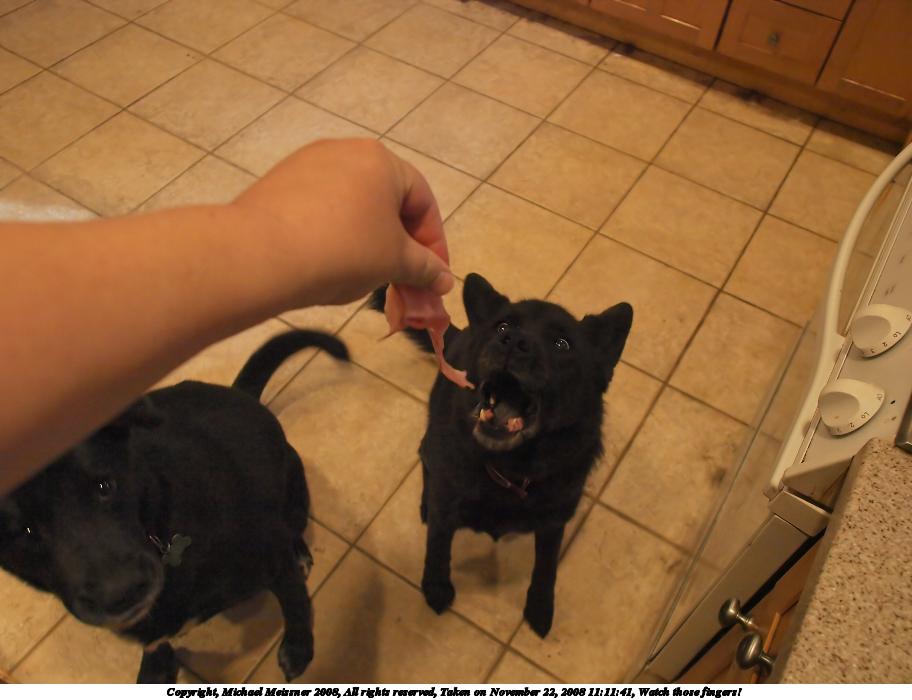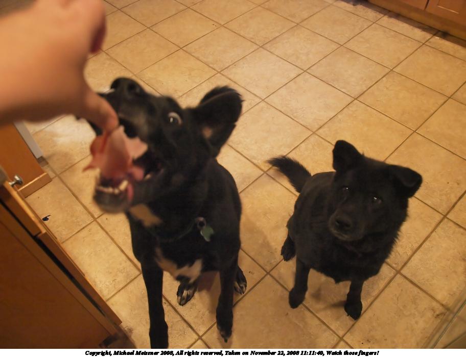 Picture #56: Watch those fingers! 912x700, 92,313 bytes (91K), (html file) Copyright, Michael Meissner 2008, All rights reserved Olympus E-3 camera with Olympus 14-54mm f/2.8-3.5 lens f/3.2, ISO 1600, 1/100 sec, 14.0mm, auto mode, natural color, auto gradation, matrix metering, continous focus, IS1 (All Direction Shake IS) 35mm equivalent focal length 28.0mm Programs used: gimp, neatimage Taken by Michael Meissner on November 22, 2008 11:11:40 Last modified on November 23, 2008 at 09:47 This picture is one of my favorites. |