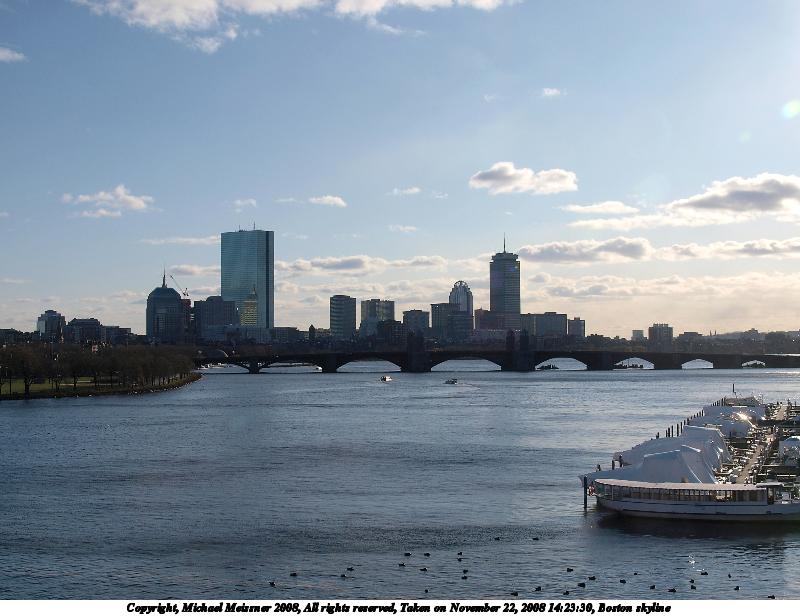 Picture #49: Boston skyline 800x616, 77,587 bytes (76K), (html file) Copyright, Michael Meissner 2008, All rights reserved Olympus E-3 camera with Olympus 14-54mm f/2.8-3.5 lens f/9.0, ISO 100, 1/640 sec, 20.0mm, auto mode, natural color, auto gradation, matrix metering, IS1 (All Direction Shake IS) 35mm equivalent focal length 40.0mm Programs used: gimp Taken by Michael Meissner on November 22, 2008 14:23:30 Last modified on December 05, 2008 at 09:24 |