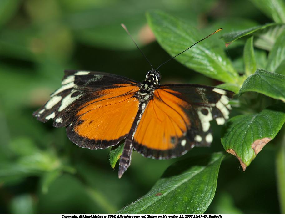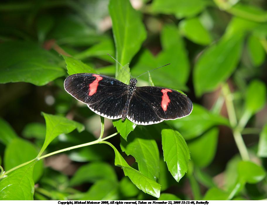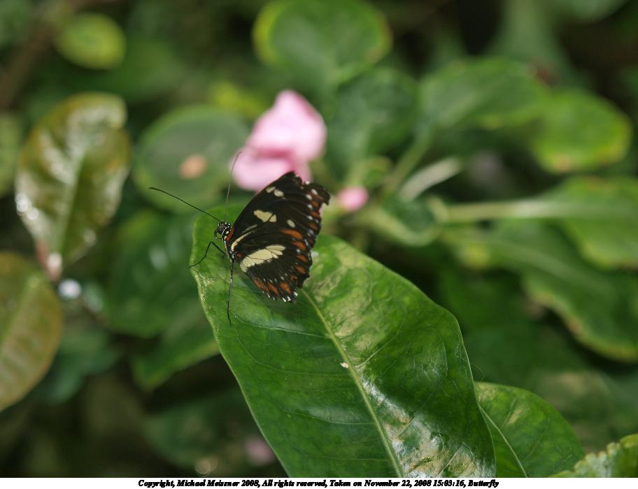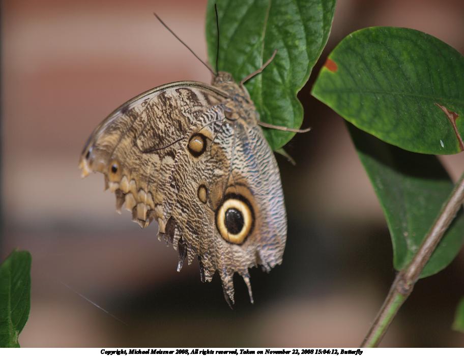 Picture #35: Butterfly #12 912x700, 105,964 bytes (104K), (html file) Copyright, Michael Meissner 2008, All rights reserved Olympus E-3 camera with Olympus 14-54mm f/2.8-3.5 lens f/3.5, ISO 200, 1/100 sec, 50.0mm, auto mode, natural color, auto gradation, matrix metering, IS1 (All Direction Shake IS) 35mm equivalent focal length 100.0mm Taken by Michael Meissner on November 22, 2008 15:16:38 Last modified on December 05, 2008 at 09:27 |