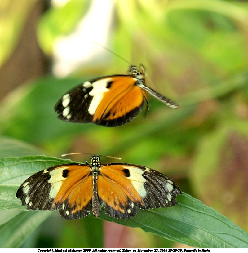 Picture #28: Butterfly in flight #3 800x816, 88,709 bytes (87K), (html file) Copyright, Michael Meissner 2008, All rights reserved Olympus E-3 camera with Olympus 14-54mm f/2.8-3.5 lens f/3.5, ISO 320, 1/100 sec, 54.0mm, auto mode, natural color, auto gradation, matrix metering, IS1 (All Direction Shake IS) 35mm equivalent focal length 108.0mm Programs used: gimp Taken by Michael Meissner on November 22, 2008 15:20:26 Last modified on December 05, 2008 at 09:35 This picture is one of my favorites. |
