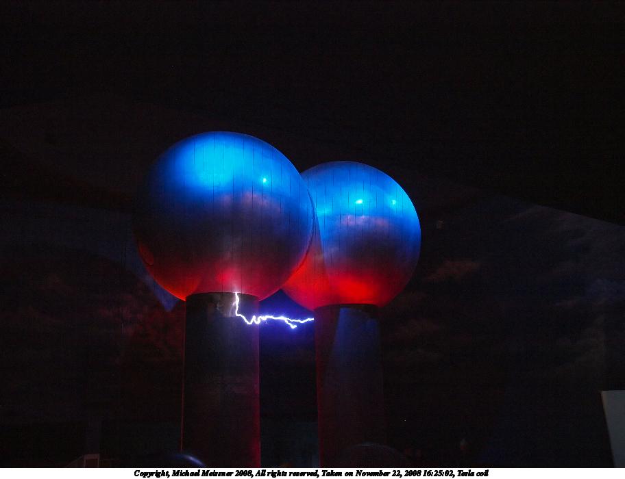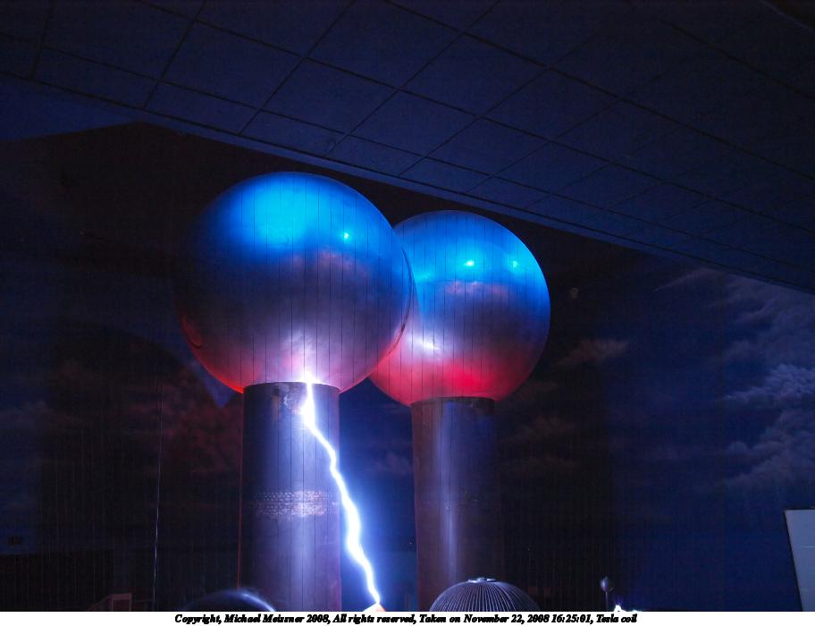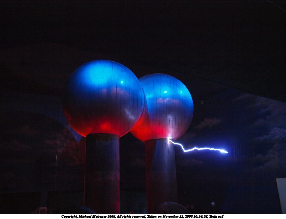 Picture #20: Tesla coil #5 912x700, 56,509 bytes (56K), (html file) Copyright, Michael Meissner 2008, All rights reserved Olympus E-3 camera with Olympus 14-54mm f/2.8-3.5 lens f/3.0, ISO 1600, 1/8 sec, 22.0mm, auto mode, natural color, auto gradation, matrix metering, IS1 (All Direction Shake IS) 35mm equivalent focal length 44.0mm Programs used: NoiseNinja, gimp Taken by Michael Meissner on November 22, 2008 16:25:28 Last modified on December 06, 2008 at 09:41 |
