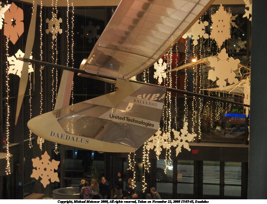 Picture #15: Daedalus 912x700, 131,714 bytes (129K), (html file) Copyright, Michael Meissner 2008, All rights reserved Olympus E-3 camera with Olympus 14-54mm f/2.8-3.5 lens f/3.5, ISO 800, 1/10 sec, 42.0mm, auto mode, natural color, auto gradation, matrix metering, IS1 (All Direction Shake IS) 35mm equivalent focal length 84.0mm Taken by Michael Meissner on November 22, 2008 17:07:45 Last modified on December 17, 2008 at 10:02 |
