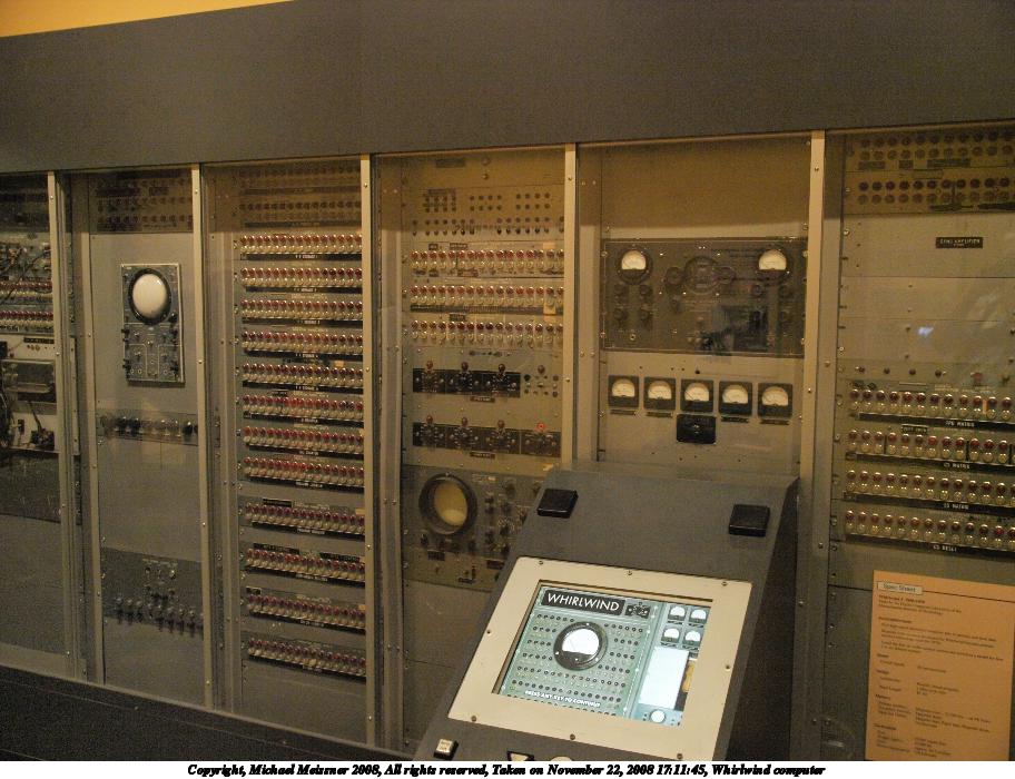 Picture #13: Whirlwind computer 912x700, 131,690 bytes (129K), (html file) Copyright, Michael Meissner 2008, All rights reserved Olympus E-3 camera with Olympus 14-54mm f/2.8-3.5 lens f/3.2, ISO 2000, 1/80 sec, 19.0mm, auto mode, natural color, auto gradation, matrix metering, IS1 (All Direction Shake IS) 35mm equivalent focal length 38.0mm Taken by Michael Meissner on November 22, 2008 17:11:45 Last modified on December 17, 2008 at 10:02 |