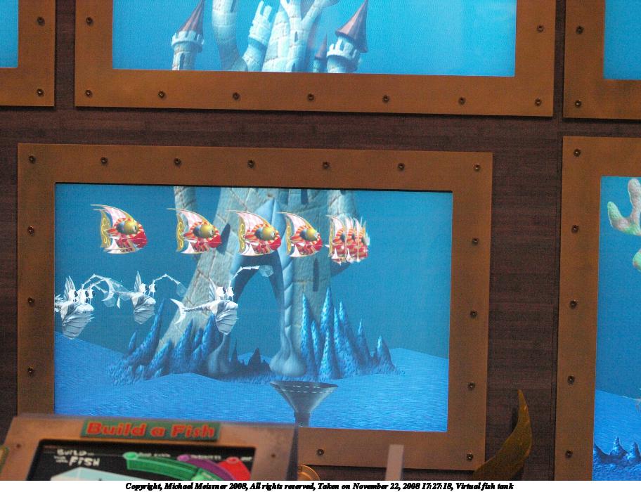 Picture #12: Virtual fish tank 912x700, 122,532 bytes (120K), (html file) Copyright, Michael Meissner 2008, All rights reserved Olympus E-3 camera with Olympus 50mm f/2.0 lens f/2.0, ISO 2000, 1/100 sec, 50.0mm, auto mode, natural color, auto gradation, matrix metering, IS1 (All Direction Shake IS) 35mm equivalent focal length 100.0mm Taken by Michael Meissner on November 22, 2008 17:27:18 Last modified on December 17, 2008 at 10:03 |