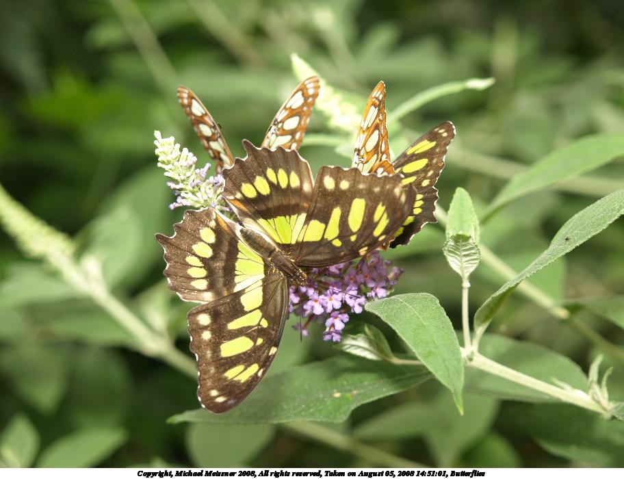 Picture #10: Butterfly #9 912x700, 52,553 bytes (52K), (html file) Copyright, Michael Meissner 2008, All rights reserved Olympus E-510 camera with Olympus 50-200mm f/2.8-3.5 lens f/3.5, ISO 200, FL-50 flash, 1/180 sec, 200.0mm, auto mode, natural color, SHQ, matrix metering, -1 sharpening, IS1 (All Direction Shake IS), noise filter low 35mm equivalent focal length 401.0mm Extra equipment used: FL-50 flash Taken by Michael Meissner on August 05, 2008 15:20:36 Last modified on October 15, 2008 at 21:56 |