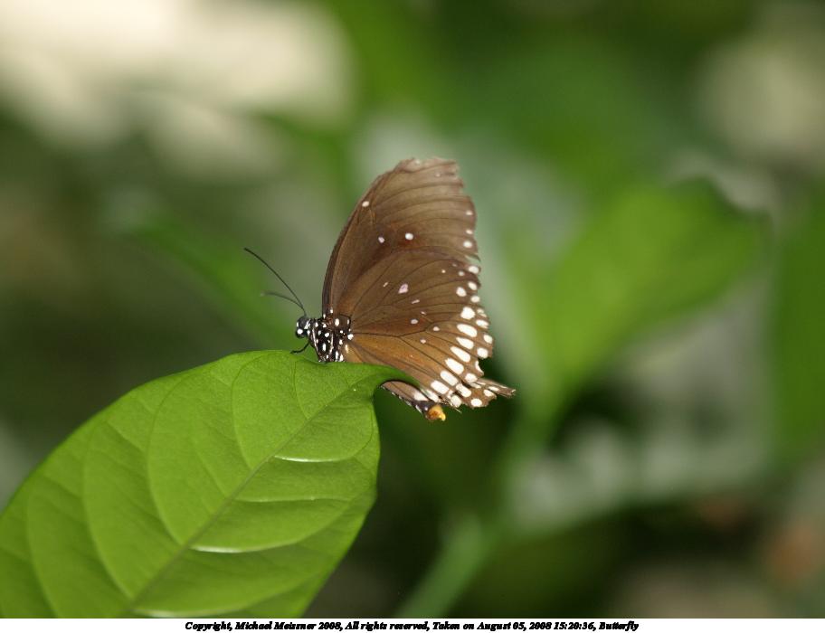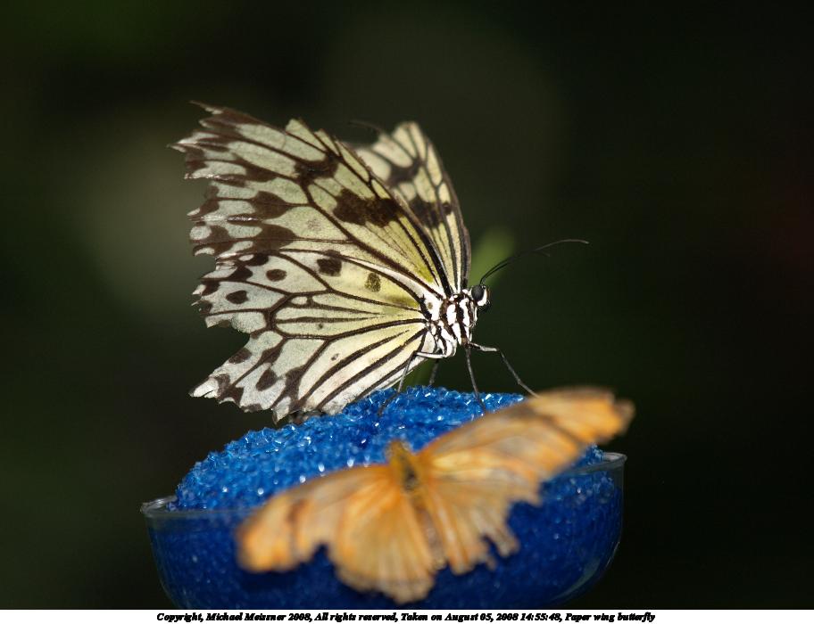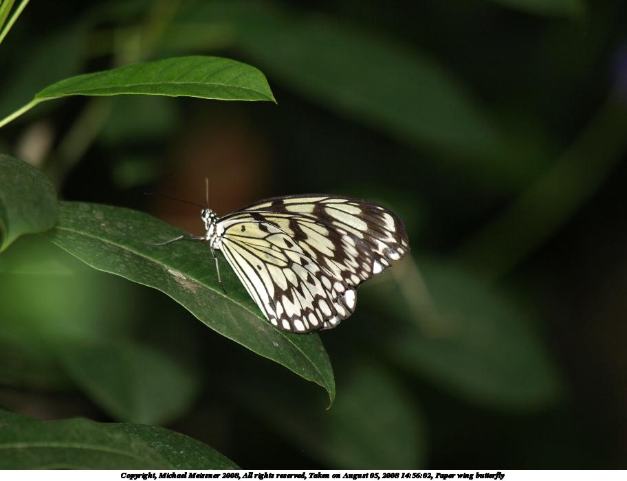 Picture #24: Paper wing butterfly #2 912x700, 61,192 bytes (60K), (html file) Copyright, Michael Meissner 2008, All rights reserved Olympus E-510 camera with Olympus 50-200mm f/2.8-3.5 lens f/3.5, ISO 200, FL-50 flash, 1/180 sec, 200.0mm, auto mode, natural color, SHQ, matrix metering, -1 sharpening, IS1 (All Direction Shake IS), noise filter low 35mm equivalent focal length 401.0mm Extra equipment used: FL-50 flash Taken by Michael Meissner on August 05, 2008 14:56:02 Last modified on October 15, 2008 at 21:52 |