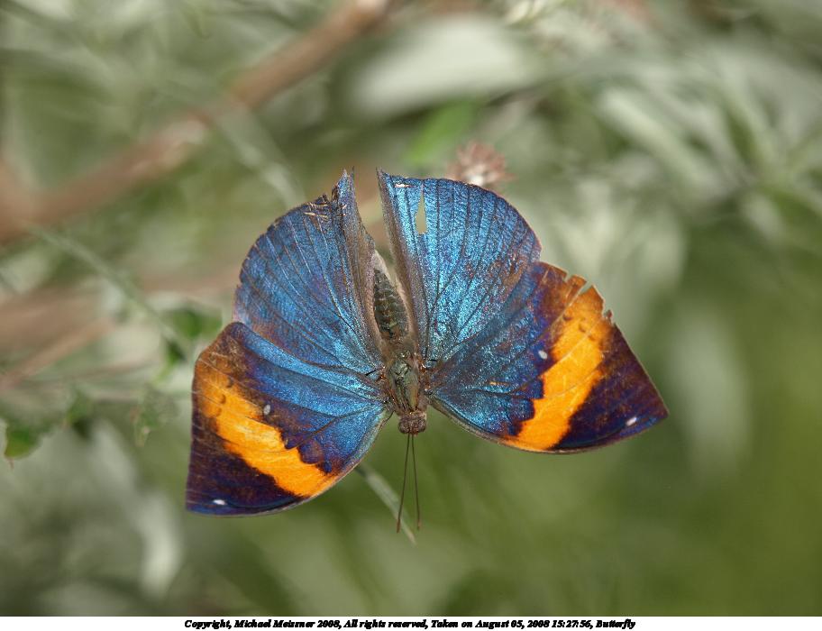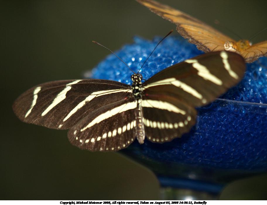 Picture #31: Butterfly #4 912x700, 78,018 bytes (77K), (html file) Copyright, Michael Meissner 2008, All rights reserved Olympus E-510 camera with Olympus 14-54mm f/2.8-3.5 lens f/3.5, ISO 200, FL-50 flash, 1/100 sec, 54.0mm, auto mode, natural color, SHQ, matrix metering, -1 sharpening, IS1 (All Direction Shake IS), noise filter low 35mm equivalent focal length 108.0mm Extra equipment used: FL-50 flash Taken by Michael Meissner on August 05, 2008 14:50:17 Last modified on October 15, 2008 at 21:50 |