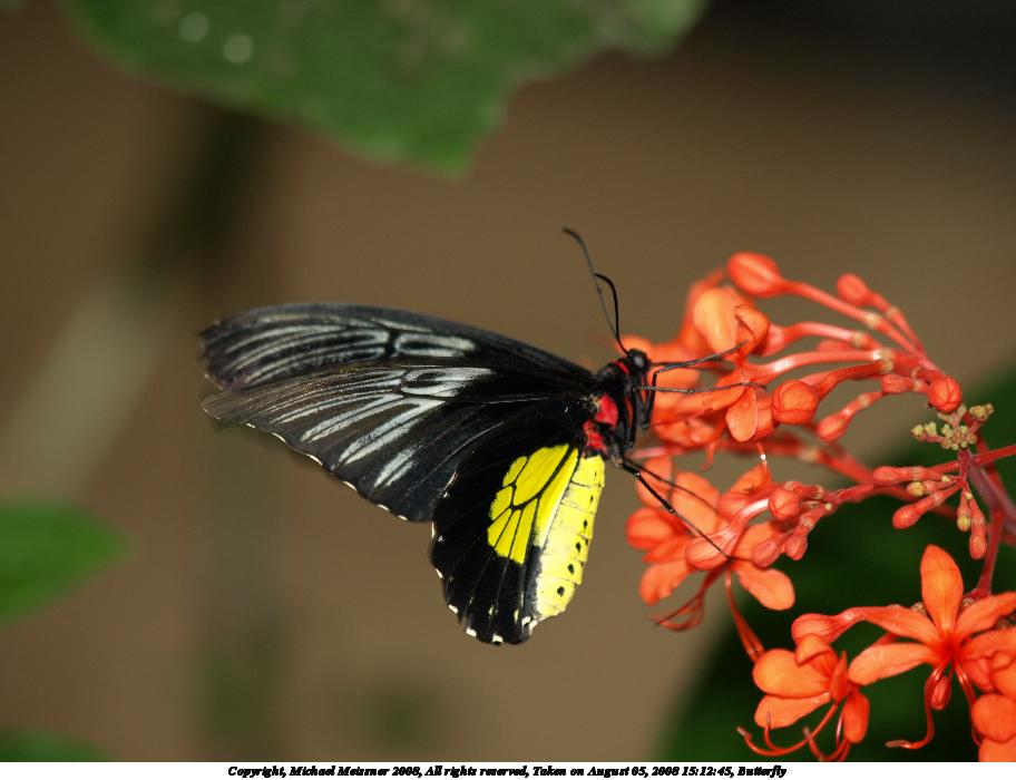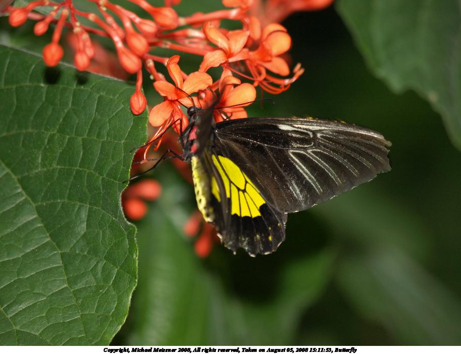 Picture #9: Butterfly #10 912x700, 67,817 bytes (67K), (html file) Copyright, Michael Meissner 2008, All rights reserved Olympus E-510 camera with Olympus 50-200mm f/2.8-3.5 lens f/2.9, ISO 200, FL-50 flash, 1/180 sec, 108.0mm, auto mode, natural color, SHQ, matrix metering, -1 sharpening, IS1 (All Direction Shake IS), noise filter low 35mm equivalent focal length 216.0mm Extra equipment used: FL-50 flash Taken by Michael Meissner on August 05, 2008 15:21:50 Last modified on October 15, 2008 at 21:57 |