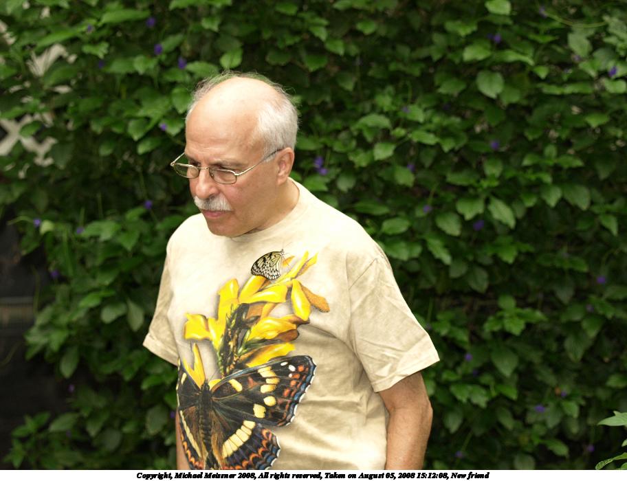 Picture #16: New friend 912x700, 95,771 bytes (94K), (html file) Copyright, Michael Meissner 2008, All rights reserved Olympus E-510 camera with Olympus 50-200mm f/2.8-3.5 lens f/2.8, ISO 200, FL-50 flash, 1/100 sec, 50.0mm, auto mode, natural color, SHQ, matrix metering, -1 sharpening, IS1 (All Direction Shake IS), noise filter low 35mm equivalent focal length 100.0mm Extra equipment used: FL-50 flash Taken by Michael Meissner on August 05, 2008 15:12:08 Last modified on October 15, 2008 at 21:55 |