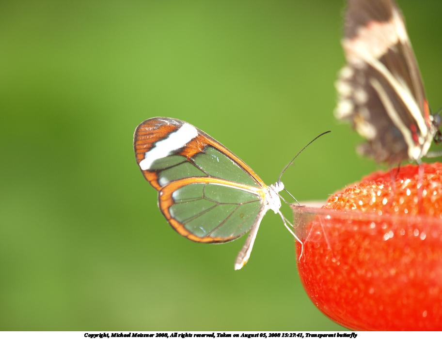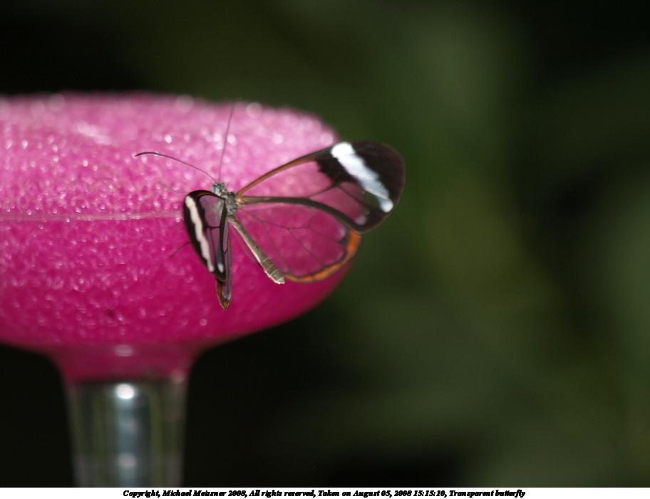 Picture #5: Transparent butterfly #2 912x700, 58,774 bytes (58K), (html file) Copyright, Michael Meissner 2008, All rights reserved Olympus E-510 camera with Olympus 50-200mm f/2.8-3.5 lens f/3.4, ISO 200, FL-50 flash, 1/180 sec, 182.0mm, auto mode, natural color, SHQ, matrix metering, -1 sharpening, IS1 (All Direction Shake IS), noise filter low 35mm equivalent focal length 365.0mm Extra equipment used: FL-50 flash Taken by Michael Meissner on August 05, 2008 15:27:41 Last modified on October 15, 2008 at 21:58 |