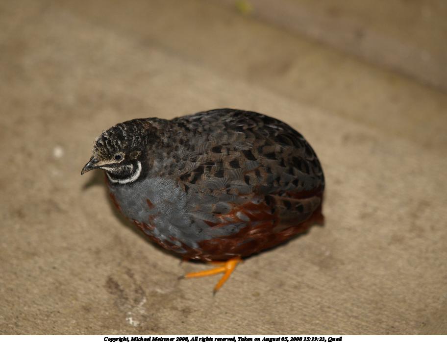 Picture #11: Quail 912x700, 66,137 bytes (65K), (html file) Copyright, Michael Meissner 2008, All rights reserved Olympus E-510 camera with Olympus 50-200mm f/2.8-3.5 lens f/3.5, ISO 200, FL-50 flash, 1/180 sec, 200.0mm, auto mode, natural color, SHQ, matrix metering, -1 sharpening, IS1 (All Direction Shake IS), noise filter low 35mm equivalent focal length 401.0mm Extra equipment used: FL-50 flash Taken by Michael Meissner on August 05, 2008 15:19:23 Last modified on October 15, 2008 at 21:56 |