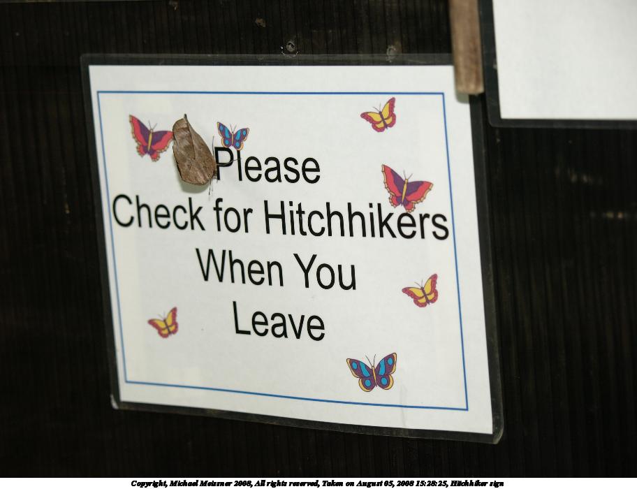 Picture #3: Hitchhiker sign 912x700, 68,439 bytes (67K), (html file) Copyright, Michael Meissner 2008, All rights reserved Olympus E-510 camera with Olympus 50-200mm f/2.8-3.5 lens f/2.8, ISO 200, FL-50 flash, 1/125 sec, 67.0mm, auto mode, natural color, SHQ, matrix metering, -1 sharpening, IS1 (All Direction Shake IS), noise filter low 35mm equivalent focal length 134.0mm Extra equipment used: FL-50 flash Taken by Michael Meissner on August 05, 2008 15:28:25 Last modified on October 15, 2008 at 21:59 |