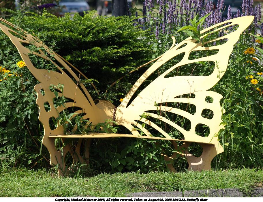 Picture #1: Butterfly chair 912x700, 212,243 bytes (208K), (html file) Copyright, Michael Meissner 2008, All rights reserved Olympus E-510 camera with Olympus 50-200mm f/2.8-3.5 lens f/5.6, ISO 200, 1/640 sec, 158.0mm, auto mode, natural color, SHQ, matrix metering, -1 sharpening, IS1 (All Direction Shake IS), noise filter low 35mm equivalent focal length 317.0mm Extra equipment used: FL-50 flash Taken by Michael Meissner on August 05, 2008 15:37:32 Last modified on October 15, 2008 at 21:59 |