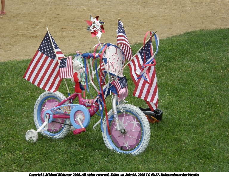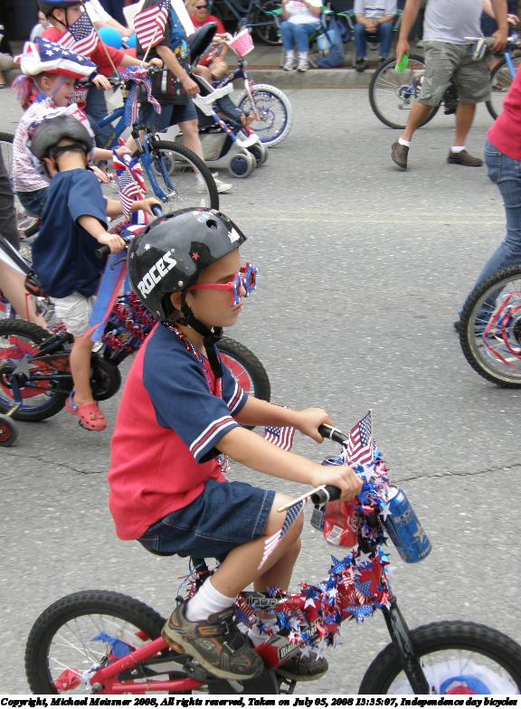 Picture #57: Independence day bicycles #5 768x592, 120,411 bytes (118K), (html file) Copyright, Michael Meissner 2008, All rights reserved Olympus SP-550UZ camera f/4.5, ISO 50, 1/200 sec, 17.1mm, auto mode, HQ, matrix metering 35mm equivalent focal length 103.0mm Taken by Michael Meissner on July 05, 2008 14:40:37 Last modified on July 09, 2008 at 12:41 |