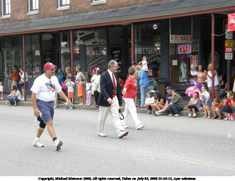 Picture #17: Ayer selectmen 768x592, 96,239 bytes (94K), (html file) Copyright, Michael Meissner 2008, All rights reserved Olympus SP-550UZ camera f/3.8, ISO 50, 1/80 sec, 13.0mm, auto mode, HQ, matrix metering 35mm equivalent focal length 78.0mm Taken by Michael Meissner on July 05, 2008 13:36:11 Last modified on July 09, 2008 at 12:28 |