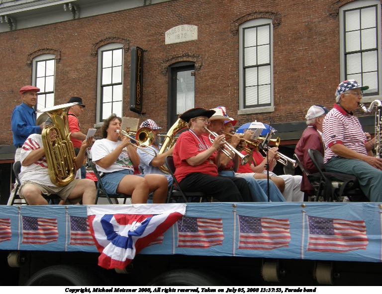 Picture #25: Parade band #2 768x592, 99,377 bytes (98K), (html file) Copyright, Michael Meissner 2008, All rights reserved Olympus SP-550UZ camera f/5.6, ISO 50, 1/60 sec, 4.7mm, auto mode, HQ, matrix metering 35mm equivalent focal length 28.0mm Taken by Michael Meissner on July 05, 2008 13:39:37 Last modified on July 09, 2008 at 12:30 |
