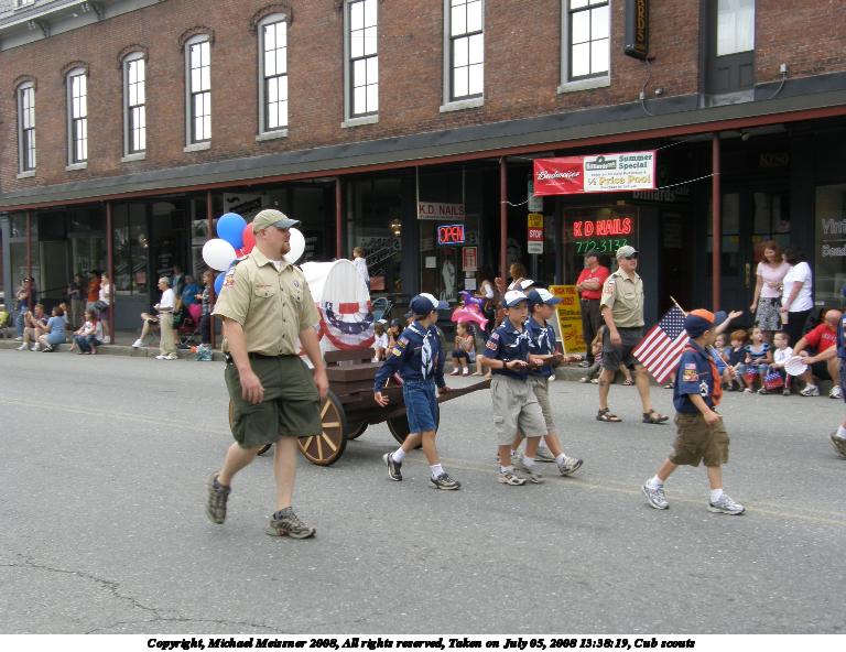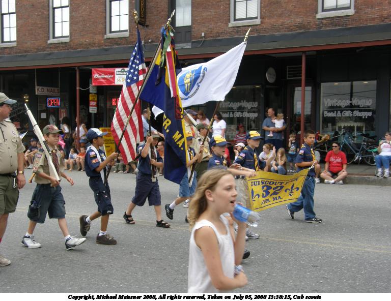 Picture #23: Cub scouts #2 768x592, 94,935 bytes (93K), (html file) Copyright, Michael Meissner 2008, All rights reserved Olympus SP-550UZ camera f/4.5, ISO 50, 1/80 sec, 7.4mm, auto mode, HQ, matrix metering 35mm equivalent focal length 45.0mm Taken by Michael Meissner on July 05, 2008 13:38:19 Last modified on July 09, 2008 at 12:29 |
