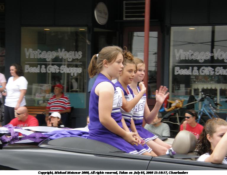 Picture #24: Cheerleaders 768x592, 73,360 bytes (72K), (html file) Copyright, Michael Meissner 2008, All rights reserved Olympus SP-550UZ camera f/4.1, ISO 80, 1/160 sec, 18.6mm, auto mode, HQ, matrix metering 35mm equivalent focal length 112.0mm Taken by Michael Meissner on July 05, 2008 13:38:37 Last modified on July 09, 2008 at 12:29 |