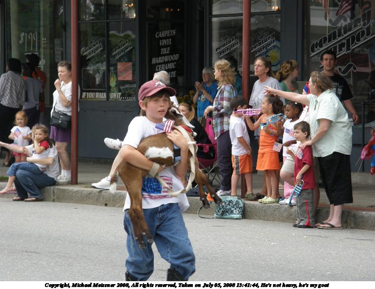 Picture #30: He's not heavy, he's my goat 768x592, 92,699 bytes (91K), (html file) Copyright, Michael Meissner 2008, All rights reserved Olympus SP-550UZ camera f/4.3, ISO 80, 1/200 sec, 29.4mm, auto mode, HQ, matrix metering 35mm equivalent focal length 176.0mm Taken by Michael Meissner on July 05, 2008 13:41:44 Last modified on July 09, 2008 at 12:31 |