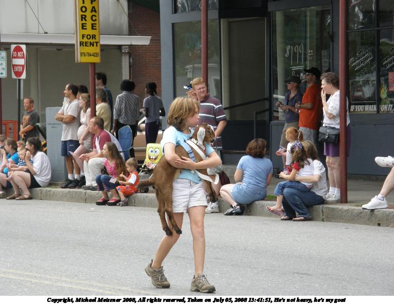 Picture #31: He's not heavy, he's my goat #2 768x592, 88,705 bytes (87K), (html file) Copyright, Michael Meissner 2008, All rights reserved Olympus SP-550UZ camera f/4.3, ISO 100, 1/200 sec, 29.4mm, auto mode, HQ, matrix metering 35mm equivalent focal length 176.0mm Taken by Michael Meissner on July 05, 2008 13:41:51 Last modified on July 09, 2008 at 12:31 |