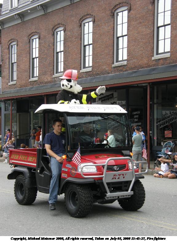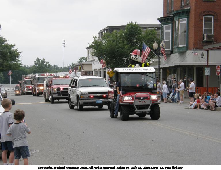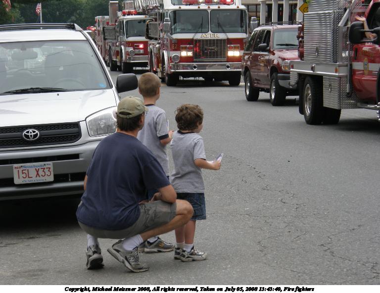 Picture #38: Fire fighters #3 768x592, 84,143 bytes (83K), (html file) Copyright, Michael Meissner 2008, All rights reserved Olympus SP-550UZ camera f/4.2, ISO 50, 1/250 sec, 21.9mm, auto mode, HQ, matrix metering 35mm equivalent focal length 132.0mm Taken by Michael Meissner on July 05, 2008 13:43:40 Last modified on July 09, 2008 at 12:33 |